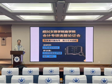 为提升研究生学位论文选题的科学性与规范性,强化学术研究的前期指导与质量保障,11月2日上午,商学院于南山校区6号楼A405举办了2024级会计专硕选题论证会。本次活动邀请杭州电子科技大学会计学院教授、博士生导师潘孝珍担任专家指导,商学院副院长丁志刚与MPAcc中心娄桂莲、宋增禄老师出席,全体2024级会计专硕研究生参加论证。