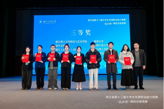 11月22-23日,第十二届浙江省大学生法律职业能力竞赛“天讼杯”模拟法庭比赛在浙江工业大学圆满落幕。由商学院(法学院)法律系指导老师徐肖东、邵胡敏,以及李宥霖、艾雨、沈语睿、黄伊、梁启月、张磊、陈舒梦、徐可涵八名法学专业学生组成的绍兴文理学院代表队,经过一天的激烈角逐,最终荣获三等奖。
