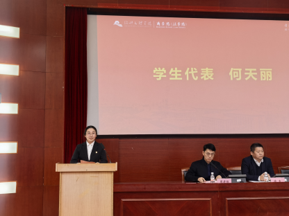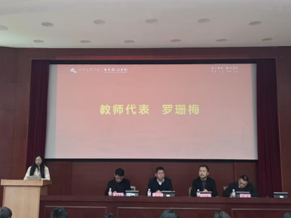 会上,学院举行了2025级新生学业导师聘任仪式,进一步强化全员育人、全程育人机制。教师代表罗珊梅与学生代表何天丽分别进行了交流发言。她们结合自身教学实践与成长经历,分享了对“教书育人”“学风建设”的理解与感悟,展现出学院上下齐心协力、相互促进的良好局面。