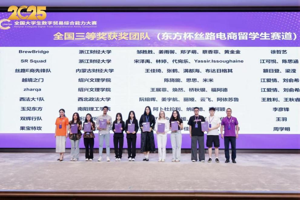 9月27日,第四届全国大学生数字贸易综合能力大赛——东方杯丝路电商来华留学生创新创业大赛暨“我为家乡代言(国际组)”全国总决赛圆满落幕。由我院经济系学生组成的“越境之门”和“zharqa”团队,凭借扎实的专业能力与出色的现场表现,成功荣获全国总决赛三等奖,为学院赢得荣誉。