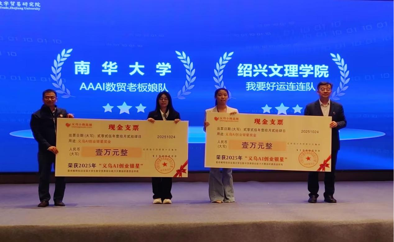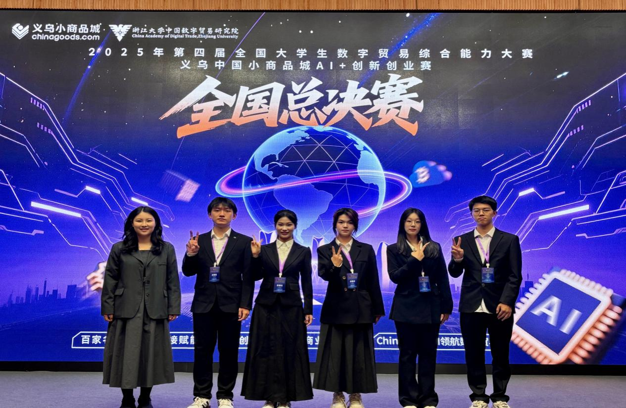 在决赛阶段,我校团队与义乌市场经营户“金叶子鞋垫”精准结对,依托Chinagoods平台开展店铺运营实战,协助商户搭建AI独立站,打造“平台店铺+独立站”双线运营模式,探索构建“一键开店、店开全球”的数贸新生态。团队还将AI工具深度融入选品优化、智能客服等全链路环节,显著提升运营效率与用户体验。最终,团队以总分第三的优异成绩荣获全国一等奖,并赢得创业银星奖及奖金1万元,指导教师荣获“优秀指导教师”称号。