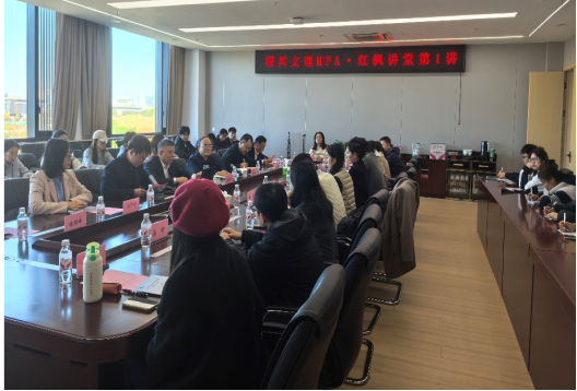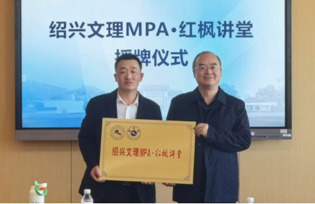 黄坚副书记为“绍兴文理MPA·红枫讲堂”授牌。副院长邵青介绍了目前我校MPA办学情况、红枫讲堂学术品牌创设初衷及学术计划安排。