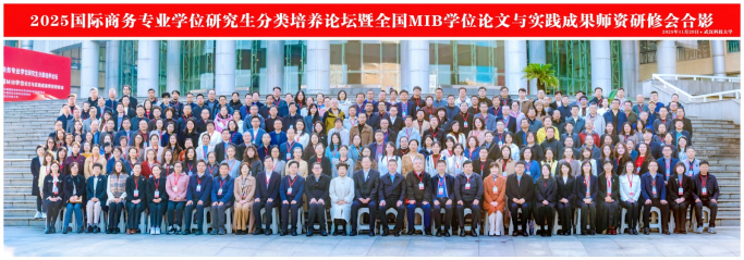 11月28日至30日,由全国国际商务专业学位研究生教育指导委员会指导、中国学位与研究生教育学会主办、武汉科技大学承办的“2025年全国国际商务专业学位研究生(MIB)学位论文与实践成果师资培训与研讨会”在武汉顺利召开。对外经济贸易大学党委书记、中国学位与研究生教育学会评估委员会主任委员黄宝印教授,山东财经大学校长、全国MIB教指委副主任委员洪俊杰教授,商务部国际贸易经济合作研究院院长兼党委书记王雪坤,中国学位与研究生教育学会副会长张淑林教授,全国MIB教指委秘书长、对外经济贸易大学蓝庆新教授等20余位教指委委员及特邀嘉宾出席本次会议。来自全国100余所高校的200余名专家学者齐聚一堂,共同探讨MIB人才培养与教育教学改革。我院陈海江和李宝玺两位教师应邀参会。