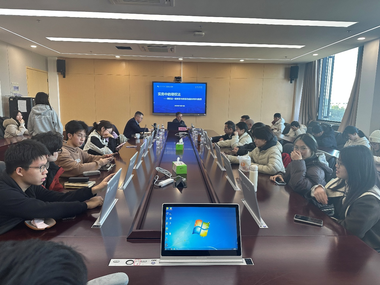 12月16日下午,“绍大法学讲坛”第五期活动在商学院416会议室顺利举行。最高人民法院研究室原一级巡视员、苏州大学王健法学院兼职教授陈现杰受邀主讲。讲座以“实务中的侵权法——侵权法一般条款与体系构成的并序与融贯”为主题,对侵权法一般条款与体系构成在司法实践中的运用进行了深入剖析。