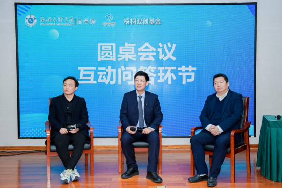 活动开场,赵浪平向徐文斌颁发了就业创业导师聘书。徐青表示,“梧桐双创基金”是学院推动人才培养模式改革、深化校企协同的重要依托,也是学生探索创新创业实践路径的关键支撑。“商创讲堂”不仅是知识传授的过程,更是面向未来的视野拓展与思维碰撞,旨在构建一个产学研深度融合的互动平台。