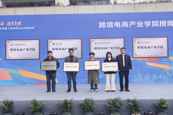 园区将与我院共同建设跨境电商产业学院,举行了授牌仪式。我院将利用园区的跨境电商企业资源、平台服务商和公共服务资源开展学生跨境电商实习实训和创新创业活动,培养学生创新实践能力。