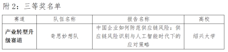 近日,第二届全国国际商务专业学位研究生全球供应链安全与管理专业能力竞赛初赛圆满收官。由商学院(法学院)经济系张松林、郑好青老师指导,孙千惠、孙锌、周姿辛三名国际商务专业研究生组成的队伍代表绍兴大学参赛,荣获全国三等奖。
