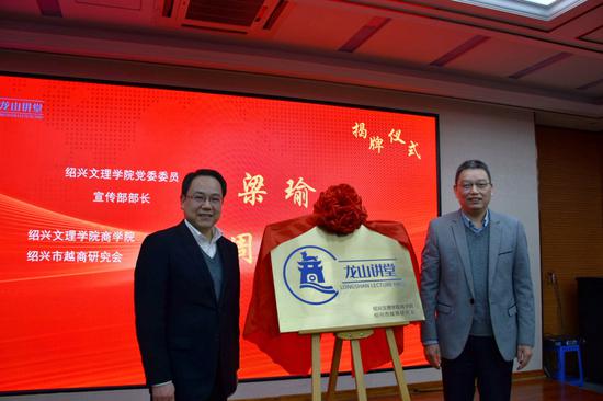 2020年12月18日下午,商学院“龙山讲堂”开讲仪式暨首场讲座在绍兴文理学院南山校区综合楼A405报告厅顺利举行。商学院党政班子成员、科级干部、系主任、党支部书记,以及律师校友联谊会代表、越商企业家代表、学生代表等共约140人参加了此次活动。校党委委员、宣传部部长梁瑜,校友会律师校友联谊会会长赵淑芳,鲁迅文化基金会绍兴分会会长鲁兰洲、绍兴市文学艺术界联合会副主席袁云作为特邀嘉宾出席仪式。仪式由商学院党委副书记史正东主持。