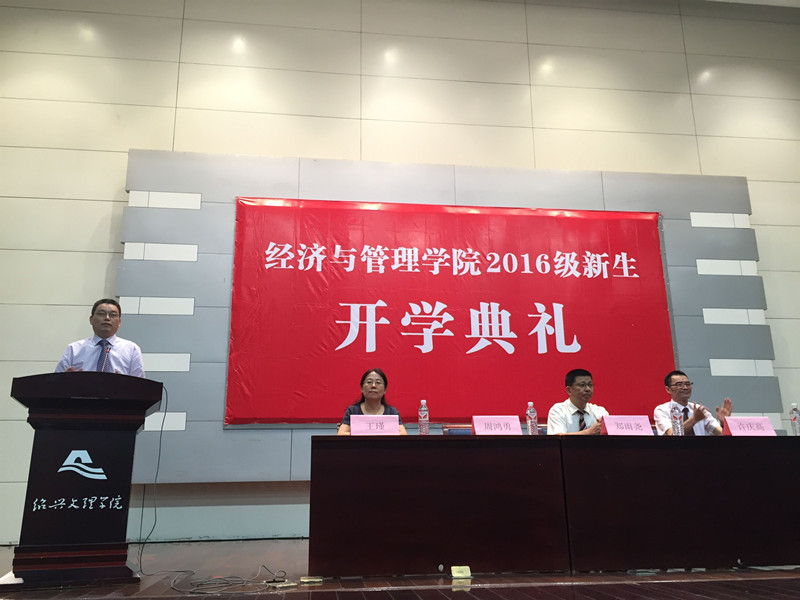 来自2016级企业管理专业的新生代表马帆在发言中表示,将秉承“厚德重道、经世济民”的院训,不断探索新知,完善品格,成就自我。