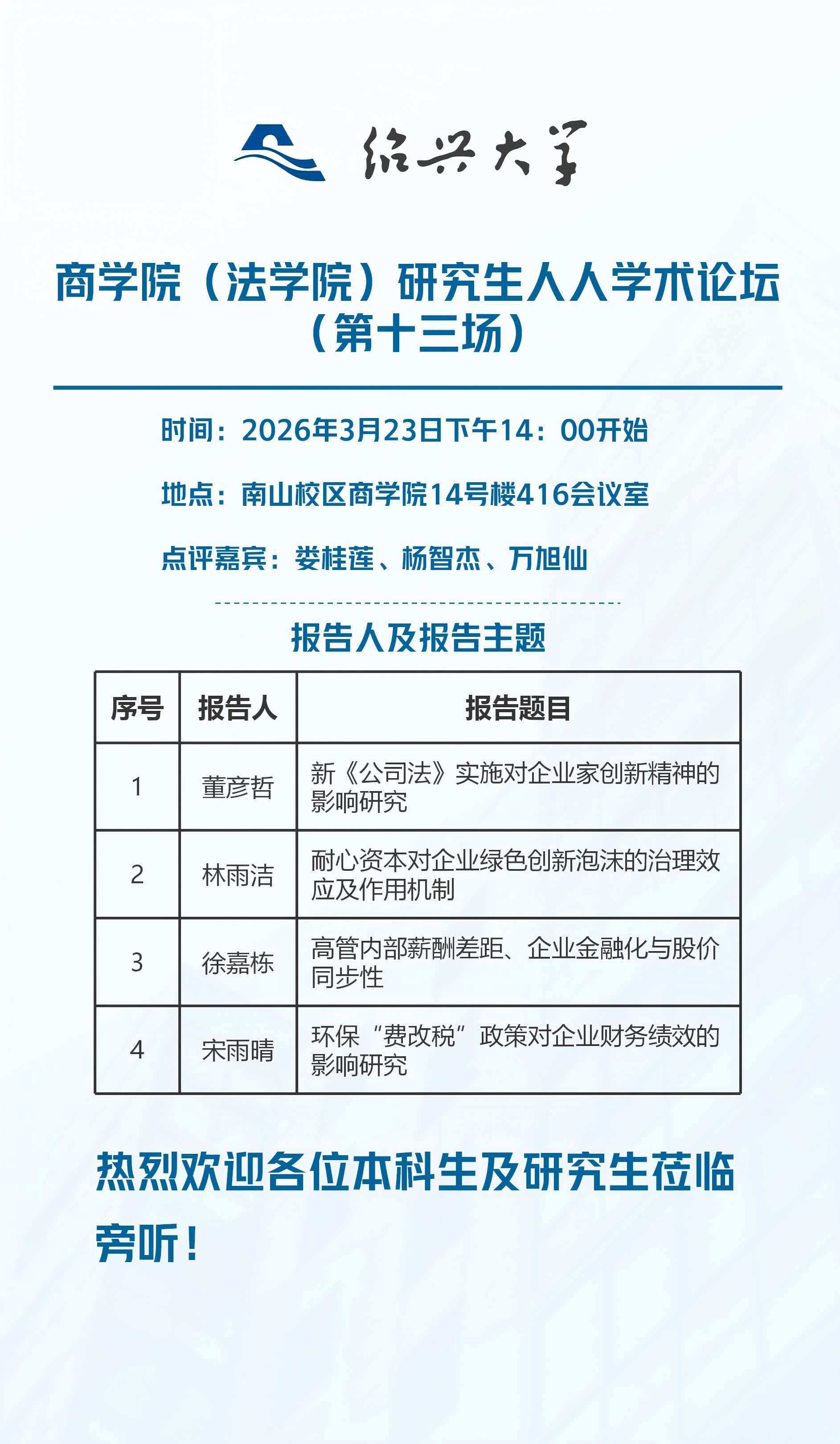 【讲座预告】研究生人人学术论坛(第13期)